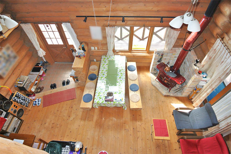 持ち主様が大切に使用されていたため、家屋状態良好・補修不要で入居することができます。 - 開放感のある吹き抜けや暖かな炎揺らぐ薪ストーブ・自然光を取り込む2階の天窓など、ログハウスならではの嬉しいポイントが盛りだくさん!