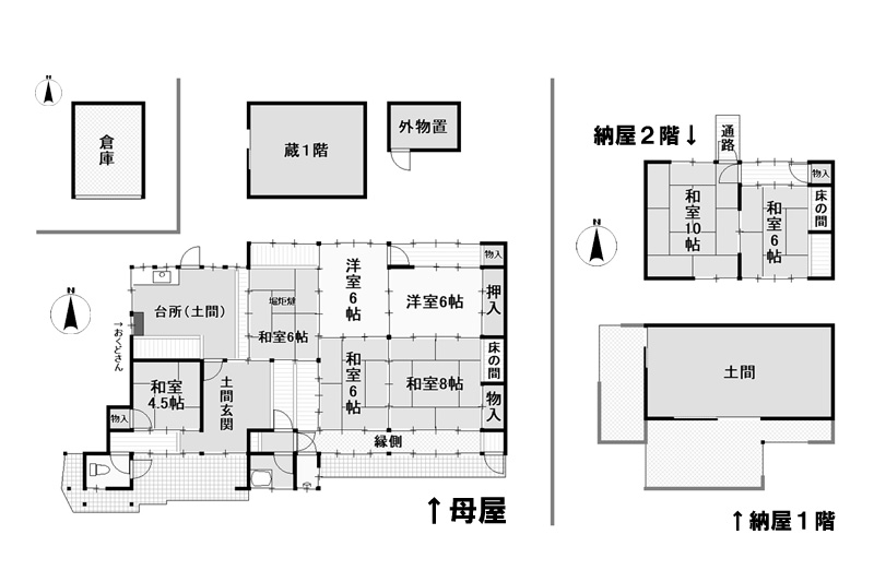 • 家屋周囲には納屋や蔵などの付属建物があり、収納スペースが豊富です。
