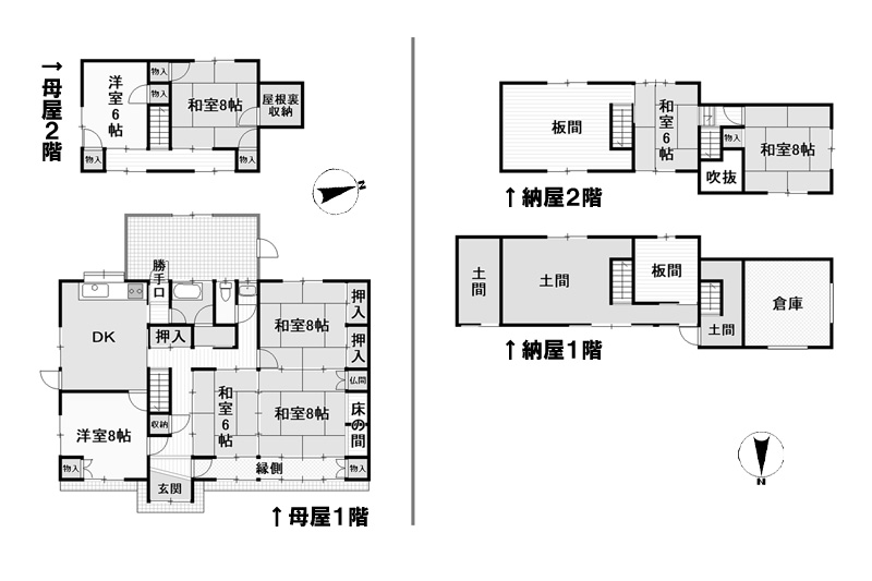 外観母屋1階:玄関母屋1階:和室の続き間母屋1階:洋室母屋1階:ダイニングキッチン母屋1階:浴室母屋1階:水洗トイレ母屋2階:和室母屋2階からの眺め付属農地(納屋)付属農地