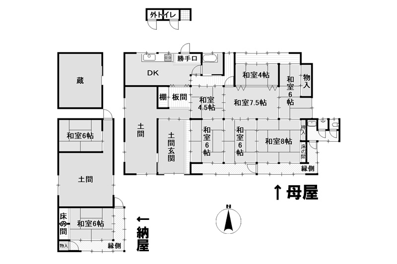 栗の木の柱など、質の良い木材が使用されている古民家です。 - 母屋の他、蔵や納屋といった付属建物もあります