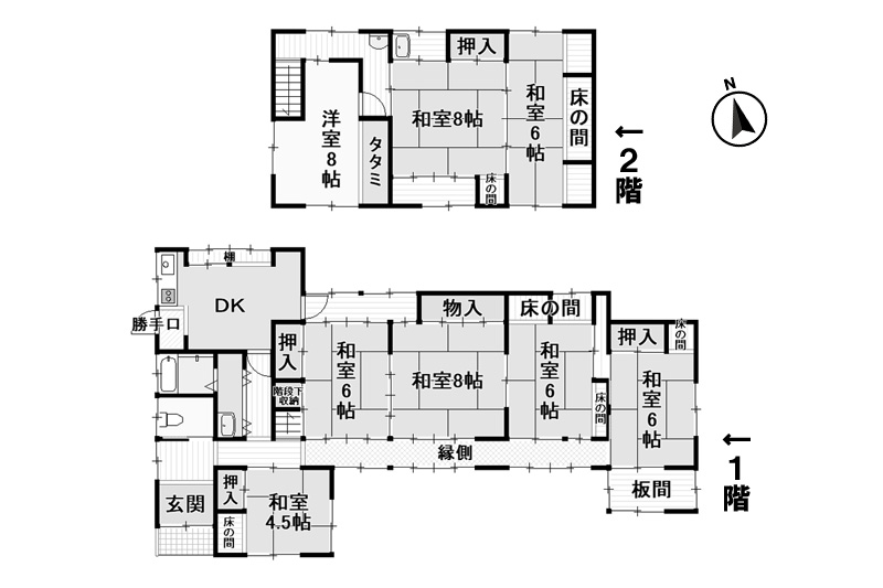 外観1階:玄関1階:和室1階:和室1階:和室1階:廊下1階:ダイニングキッチン1階:ユニットバス1階:トイレ2階:洋室物件への進入路