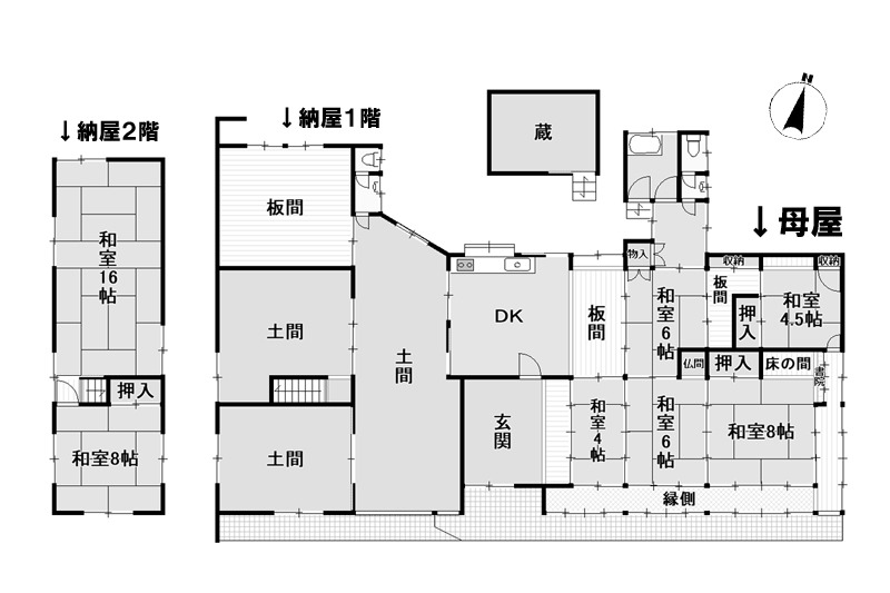 • 二階建ての納屋や蔵などがあり、保管や収納に大活躍!(納屋側のトイレは汲み取り式です)