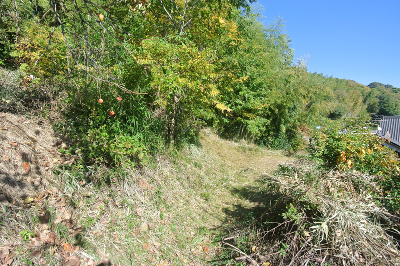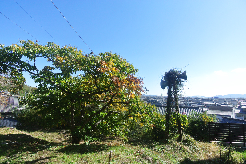 柿の木栗の木栗の木と眺望物件内に置かれた簡易物置物件入口付近物件への進入路